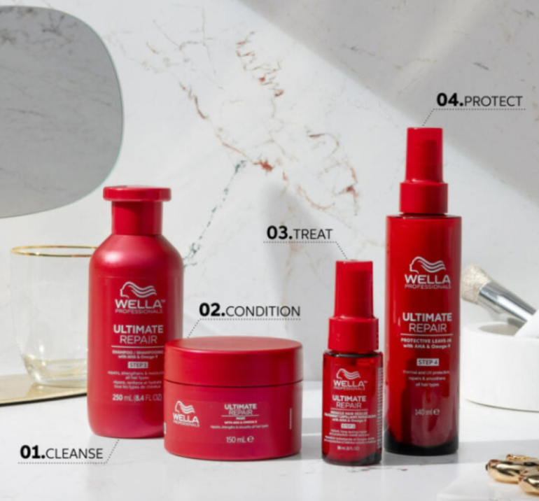 Τέσσερα προϊόντα σχεδιασμένα με 140+ χρόνια εξειδίκευση στα μαλλιά, για όλους τους τύπους μαλλιών. Το καθένα είναι σχεδιασμένο με τη νέα πατενταρισμένη τεχνολογία της Wella Professionals, έναν συνδυασμό - εμπνευσμένο από την περιποίηση της επιδερμίδας - Alpha Hydroxy Acid (ΑΗΑ) και Ωμέγα-9. Πρακτικά άμεση επανόρθωση εσωτερικά και εξωτερικά για όλους τους τύπους και τις υφές μαλλιών: σγουρά, κυματιστά, λεπτά, ίσια, χονδρά… και όλα τα ενδιάμεσα. Με πολυτελείς υφές και το διακριτικό αποκλειστικό άρωμα, το ULTIMATE REPAIR αναβαθμίζει την καθημερινή περιποίηση σε μία εξαιρετική εμπειρία.