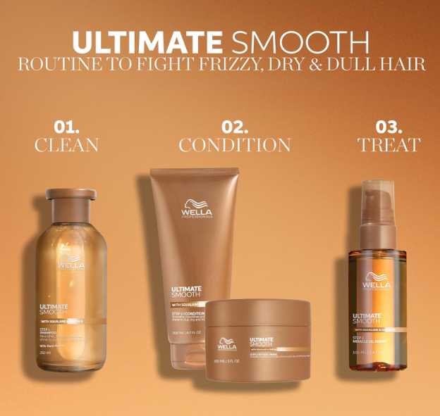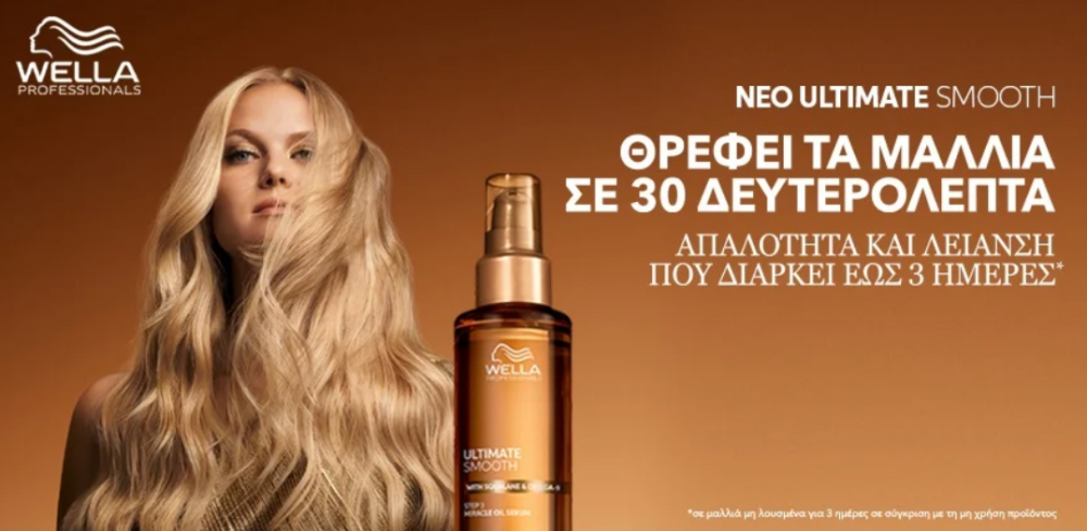 Η Wella Professionals ακολουθεί την τάση skinification στην περιποίηση των μαλλιών και γι’ αυτό η συλλογή Ultimate Smooth περιέχει θρεπτικά συστατικά γνωστά από τα καλλυντικά προσώπου. Η πατενταρισμένη τεχνολογία συνδυάζει έτσι τις επιδράσεις του σκουαλάνιου για λείανση και λάμψη των μαλλιών και των ωμέγα-9 λιπαρών οξέων για βαθιά θρέψη. Χάρη σε αυτά τα συστατικά, τα θαμπά και φριζαριστά μαλλιά γίνονται αμέσως αισθητά πιο λεία και μακροπρόθεσμα προστατεύονται από το φριζάρισμα.